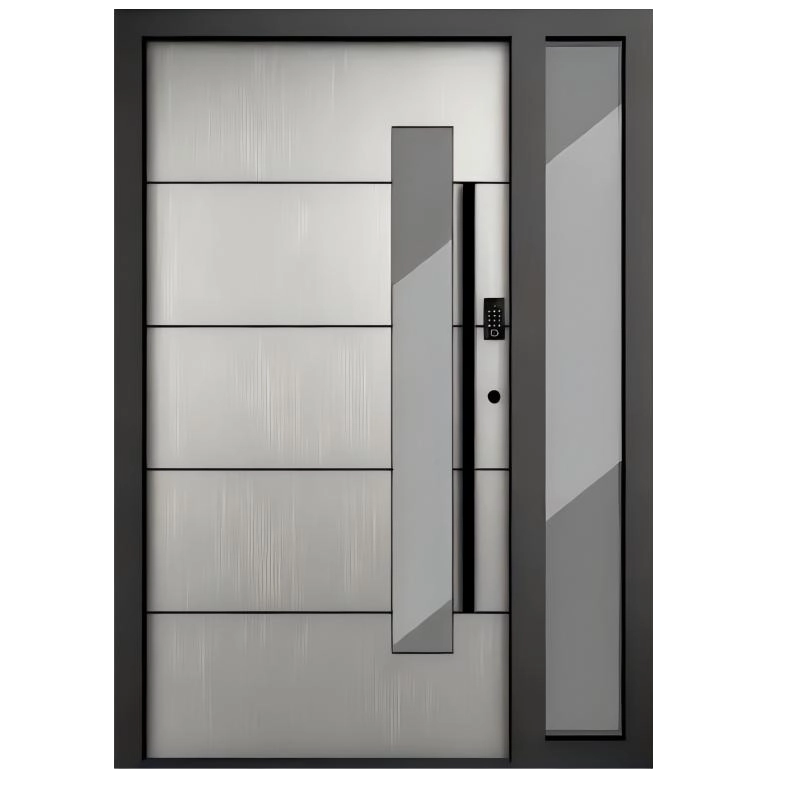 Aluminum Pivot Doors | Entrance security front door of modern residences with sidelite